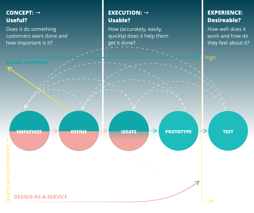 Improve product quality across disciplines by establishing a rigorous, trusted, and collaborative human-centered design practice amidst an entrenched technology centric culture where only design-as-a-service had existed before.